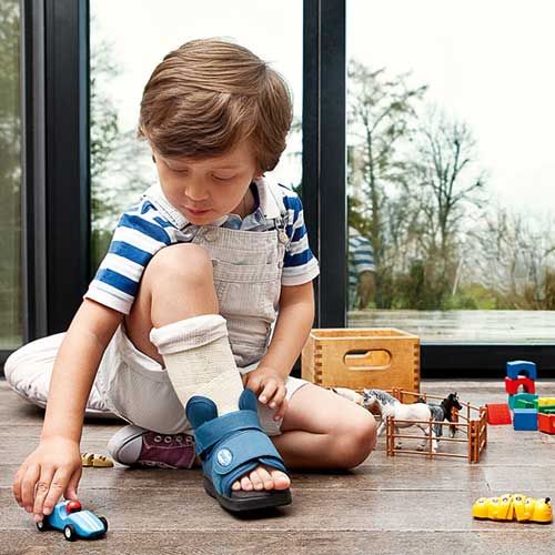 Gips- en wondverzorging gipsschoen. De SlimLine is hoog gesloten. De gepatenteerde zool zorgt voor een natuurlijke afwikkeling van de voet.